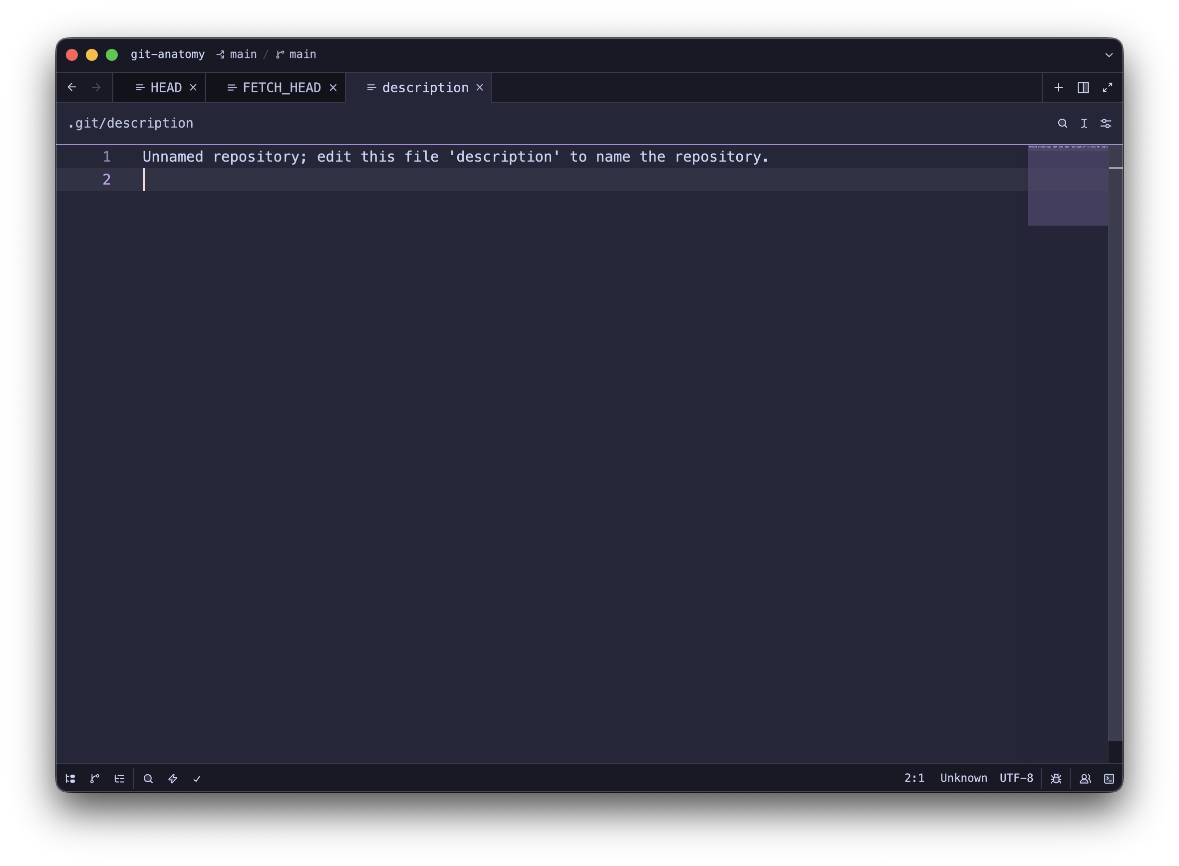 .git/description 파일은 GitWeb 같은 웹 인터페이스에서 저장소 설명을 보여주기 위한 파일이라고 하는데, GitHub, GitLab, Gitea에서는 사용되지 않는다고 하니 이런게 있다는 것 정도만 알아두면 될 것 같다