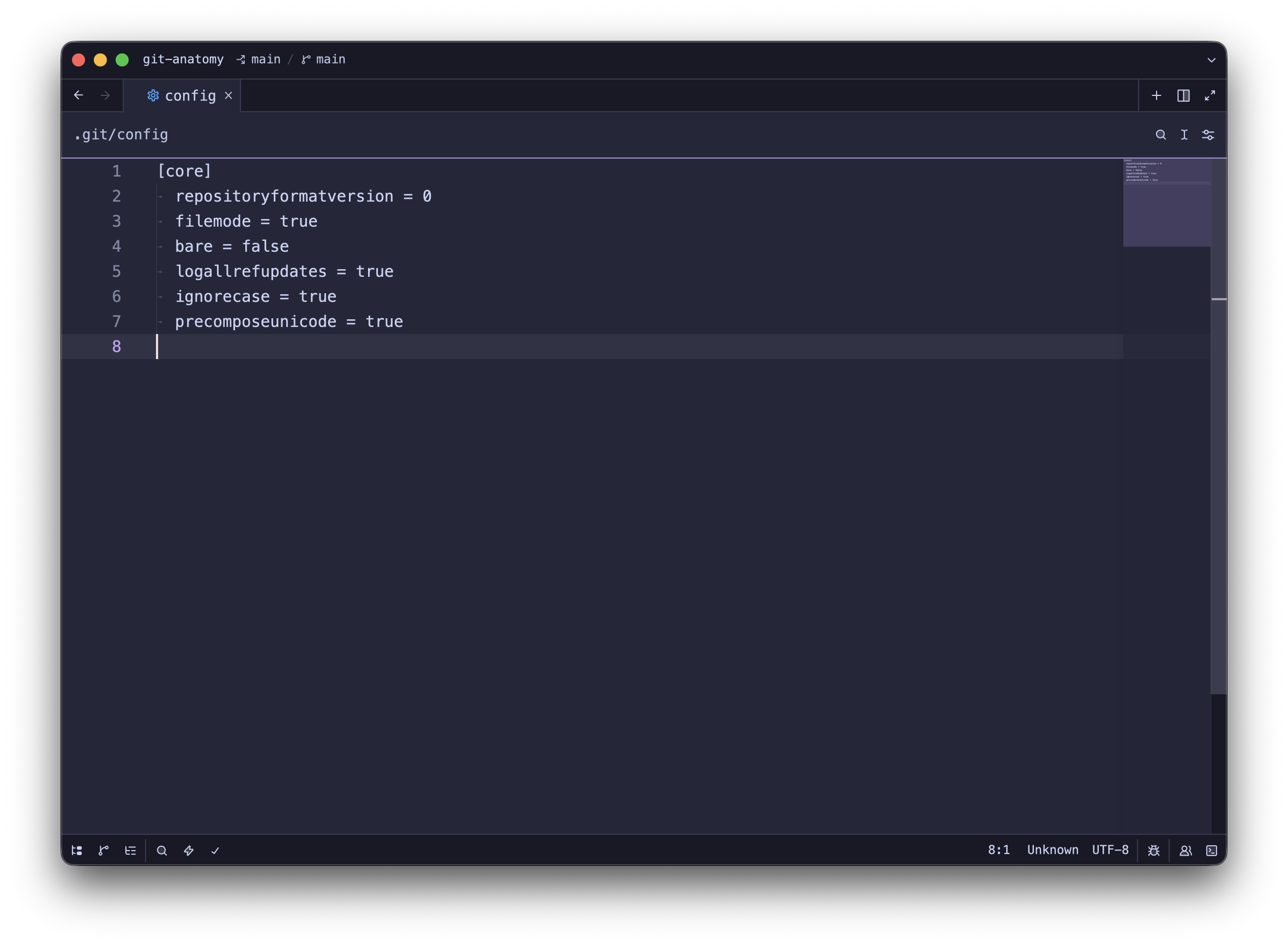 .git/config 파일에는 리포지토리 단위의 깃 설정과 remote 정보 같은 내용들이 담기게 된다