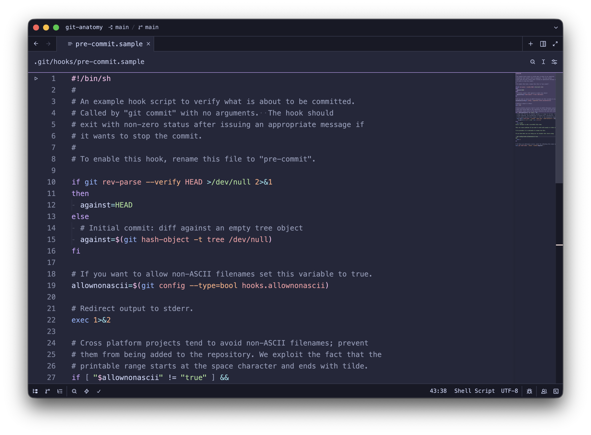 .git/hooks 안에는 여러 깃 훅 예시 파일들이 들어있다