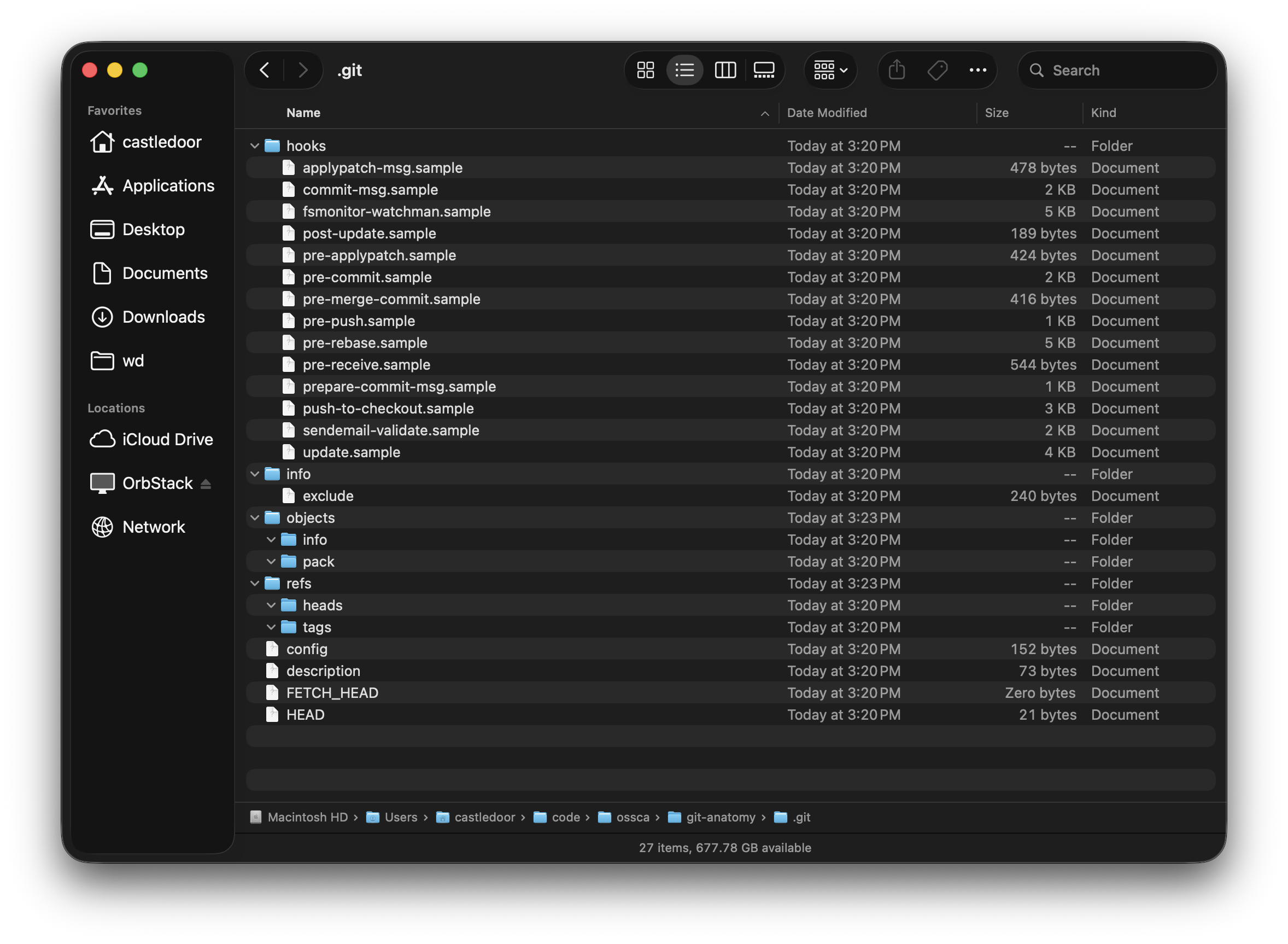 이번에 OSSCA(오픈소스 컨트리뷰션 아카데미)에 참여하게 됐는데, 깃 리포지토리에서 커밋 시 .git 폴더 안의 내용들이 어떻게 변하는지 알아보는 과제를 받았다.